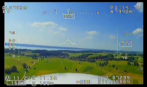 Hier ein Beispielvideo, wie ein OSD live im Flug aussieht. Man sieht abwechselnd das intern aufgezeichnete HD-Video der Mobius-Onboardkamera und bei 01:24 bzw. 03:36 das Live-Video der FPV-Übertragung mit Einblendungen vom OSD des Autopilot FY-41AP: